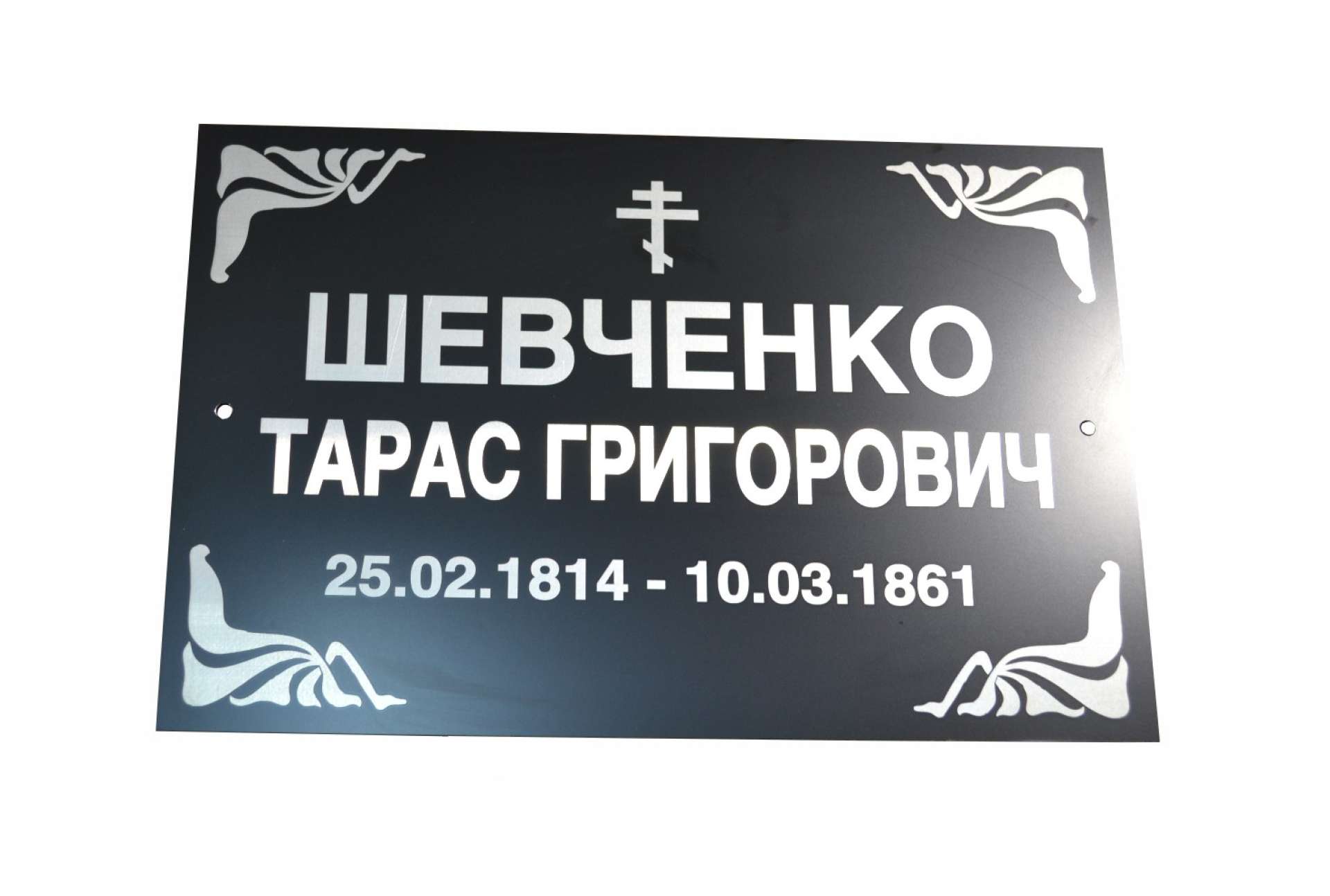 Ритуальная табличка из композита 300х200 мм. Нанесение изображения с помощью ЧПУ фрезерования. Эта табличка имеет достаточно долгий срок эксплуатации в уличных условиях.