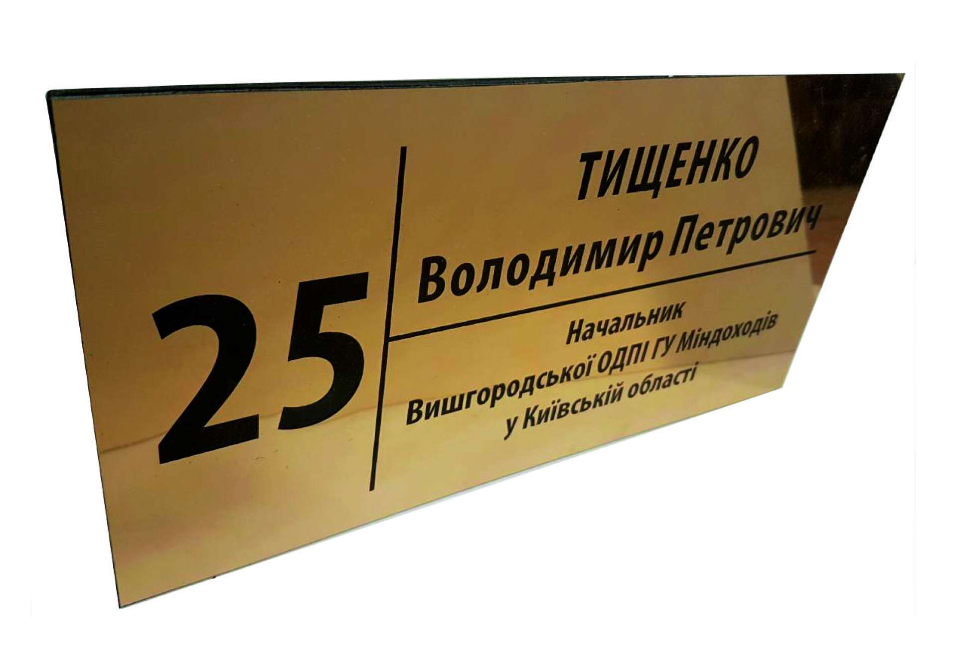 Табличка офисная на золотистом пластике в Днепре. Толщина 1,5 мм