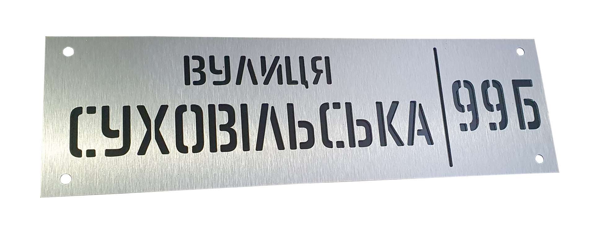 Адресная табличка из композита в Днепре. Буквы прорезаны на сквозь, заду идет подкладка из темного или любого другого цвета акрила