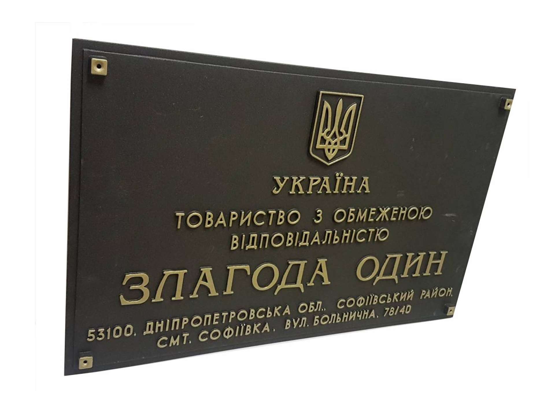 Вывеска делается из пластика с покрытием красок и лаков. Буквы предварительно запрессовываются. Время изготовления 2,5 недели. Изготавливаем любые размеры с индивидуальным просчетом цен.