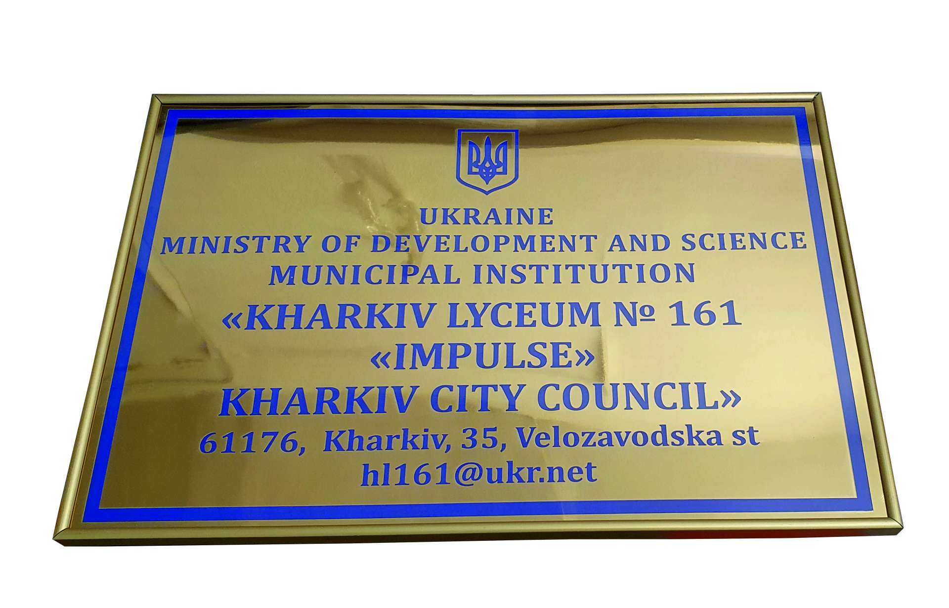 Вывеска из золотого пластика с защитным прозрачным стеклом в защитной золотистой алюминиевой рамке. Изготавливаем любой размер вывески с индивидуальным просчетом в Днепре.
